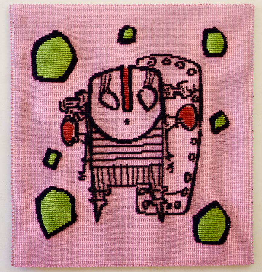 Questo progetto rappresenta una lettura dei simboli della cultura nuragica e pre nuragica che li trasporta in un futuribile viaggio nel tempo e nello spazio. La tribù di Lampu e Tronu, piccoli guerrieri cosmici e protettori dell’ambiente, oracoli della Sardegna e delle sue radici più profonde , traggono ispirazione dai bronzetti nuragici e dai guerrieri/ atleti scolpiti di Monte ‘e Prama. Questa tribù percorre l’universo alla ricerca di nuovi mondi e di nuovi pianeti. Cervi, mufloni, animali della fauna della Sardegna e Dee Madri del Mediterraneo, riproposti in queste tessiture, si trasformano in astronavi simboliche e navicelle cosmiche. Attraverso la moderna tecnologia possono comunicare la storia, la cultura di un popolo attraverso dei QR-code attivi, tessuti con la stessa tecnica del tappeto/arazzo o incisi nel basalto nero di Suni. Il gioco diventa design, ricerca; è un contenitore di informazioni del processo collaborativo e di contaminazione dal basso tra artista e artigiano.