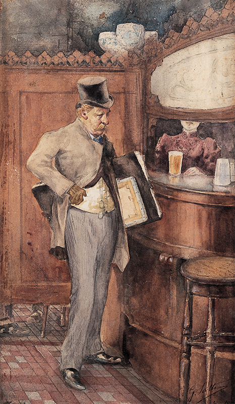Giacinto Satta, Artista al bar, fine 800, acquerello su carta, MAN